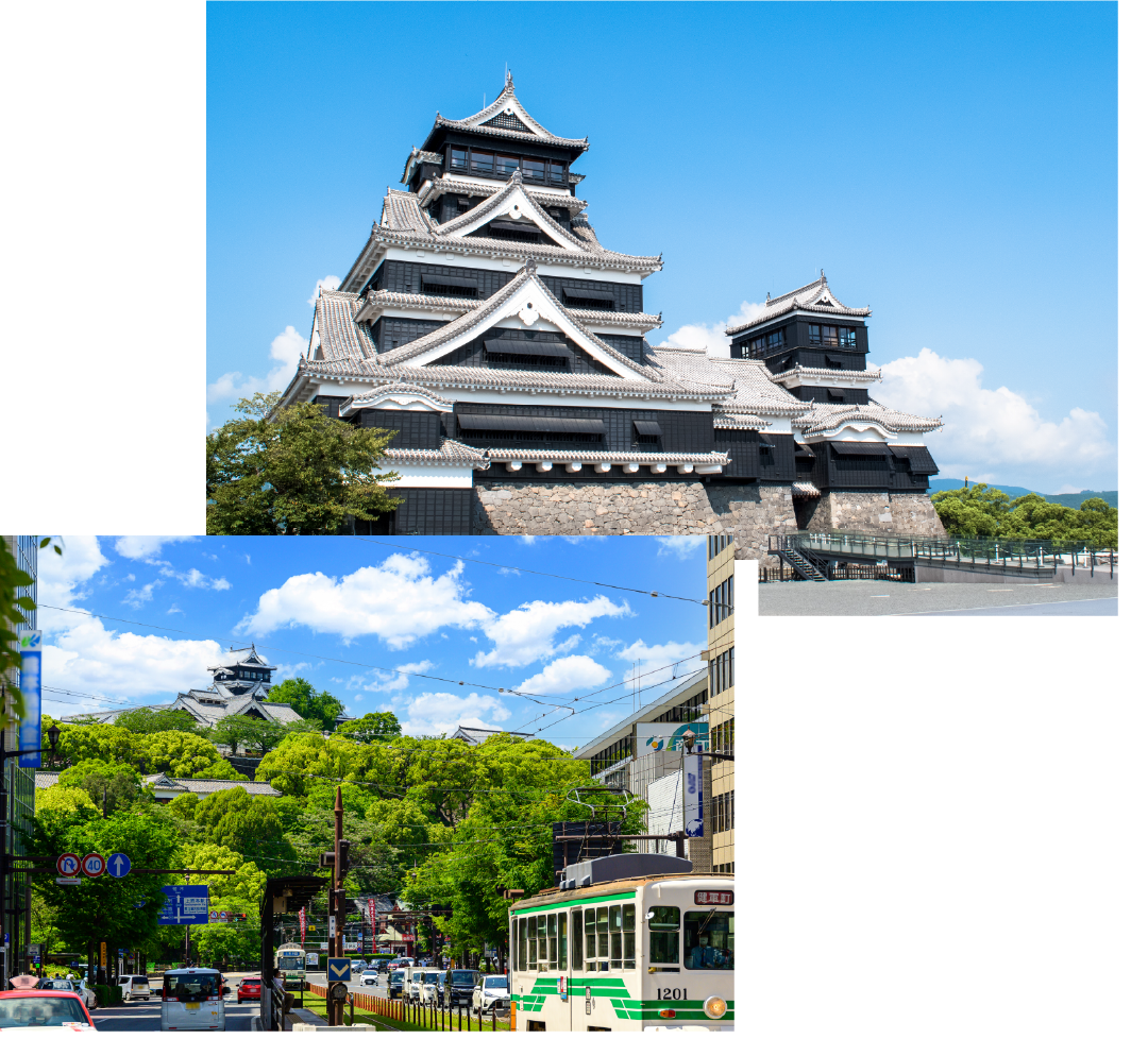 熊本県は九州のほぼ中央に位置し、約168万人(2025年9月1日時点)が暮らす県です。県庁所在地で政令指定都市の熊本市は、自然と都市機能が調和したコンパクトな都市。中心部には全国有数のショッピングアーケードがあり、商業施設や飲食店、オフィス街が集まる利便性の高い都市空間が広がっています。