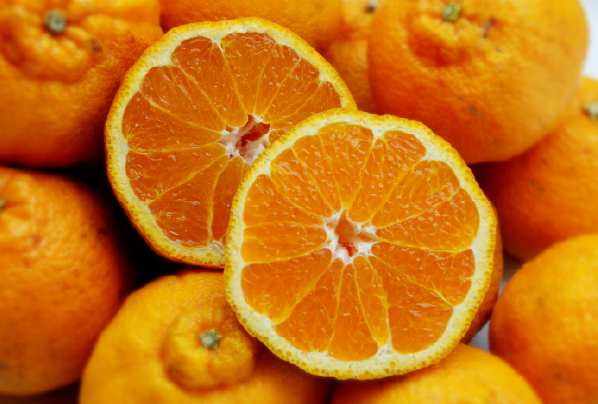 熊本の特産品の中でも特に注目したいのが、国内生産量の大半を占める「デコポン」です。「清見」と「ポンカン」を掛け合わせた品種「不知火(しらぬい)」は、糖度13度以上、クエン酸1.0%以下という厳しい品質基準をクリアしています。見た目やサイズからは想像できないほどの甘さと濃厚な果汁が特徴で、果皮は手で簡単に剥けるため、贈答用にも人気です。